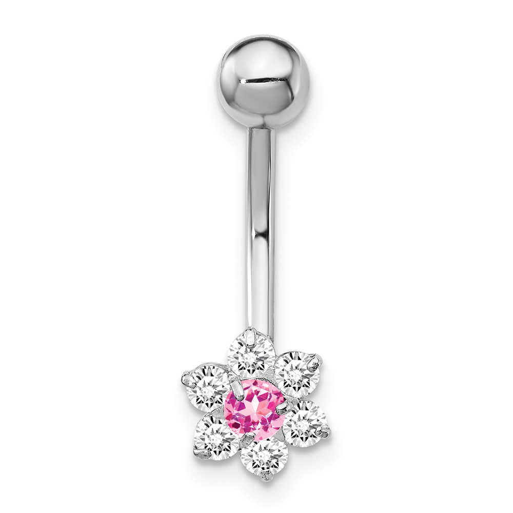 10k White Gold W/Cz Flower Pink Center Belly Dangle Q10BD139